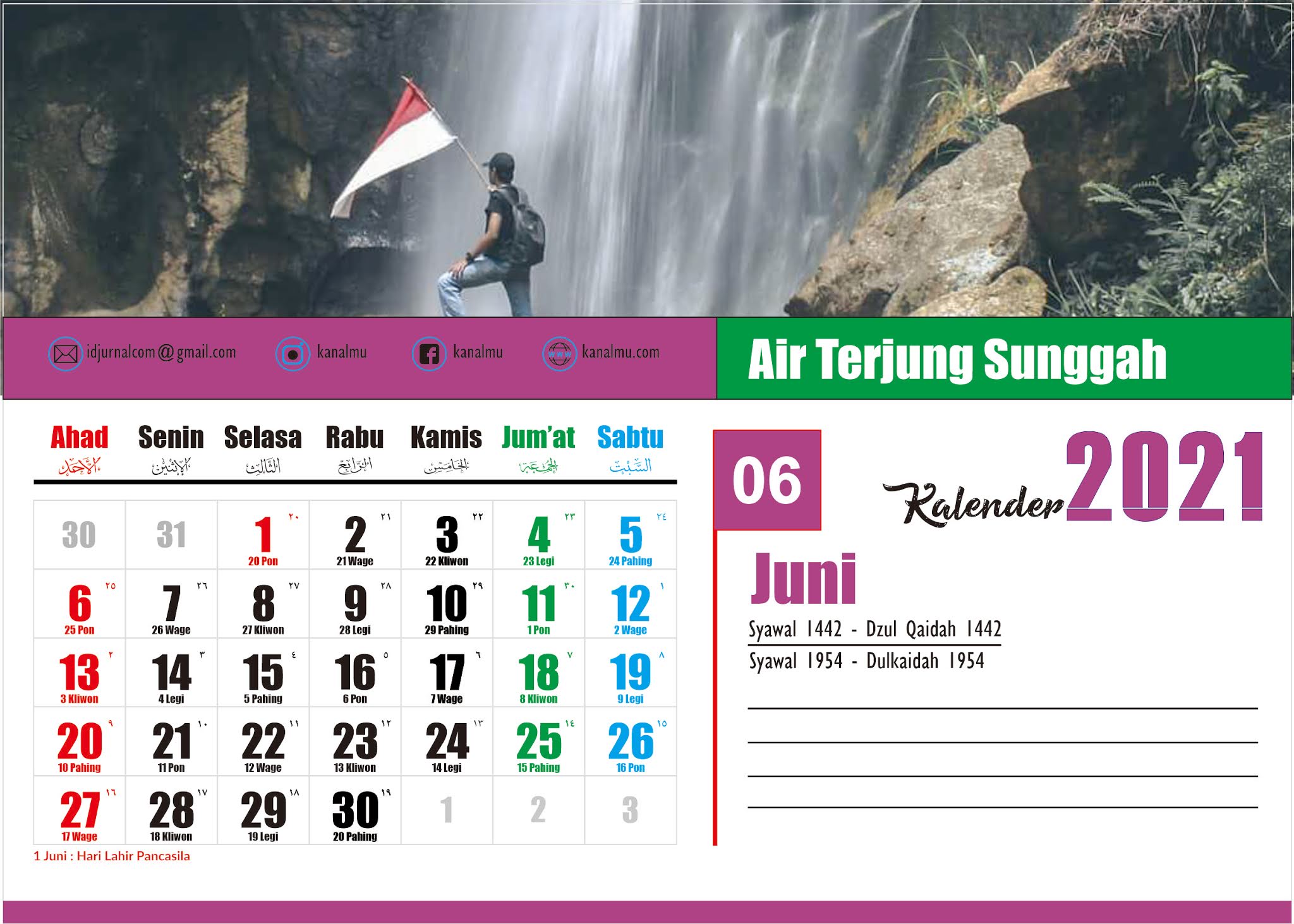 6. Kalender 2021 Bulan Juni & Destinasi Wisata Air Terjun Sunggah