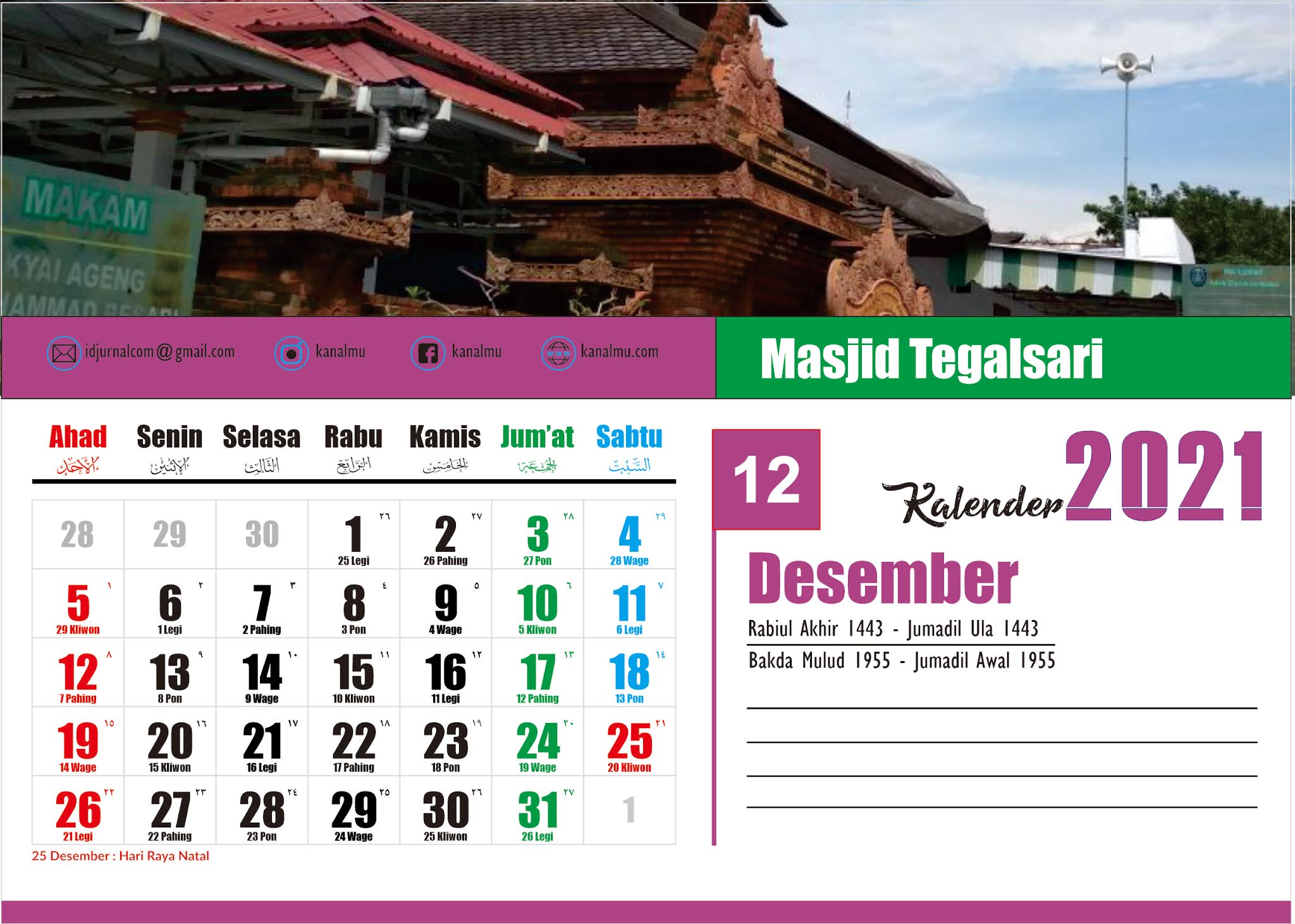 12. Kalender 2021 Bulan Desember & Destinasi Wisata Religi Masjid Tegalsari