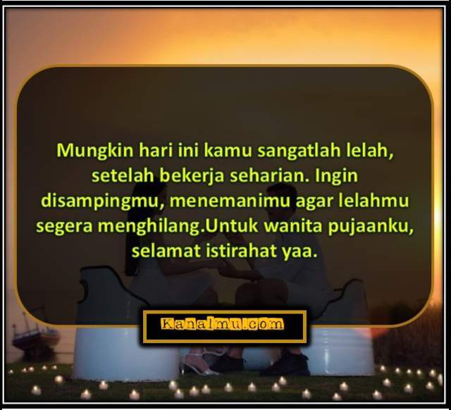 Untuk membuat jalinan kasih sanyang agar selalu hangat ada banyak caranya, salah satunya adalah mengkirimkan pesan gambar ucapan selamat tidur romantis yang dapat bikin baber pacar kamu tersayang. Dan mudah-mudahan sedikit informasi dan quotes cinta bikin bapert tersebut menjadi salah satu ucapan yang cocok yang bisa kamu pilih untuk bertukar pesan dengan kekasih tercinta.