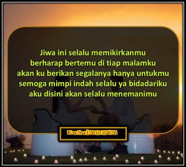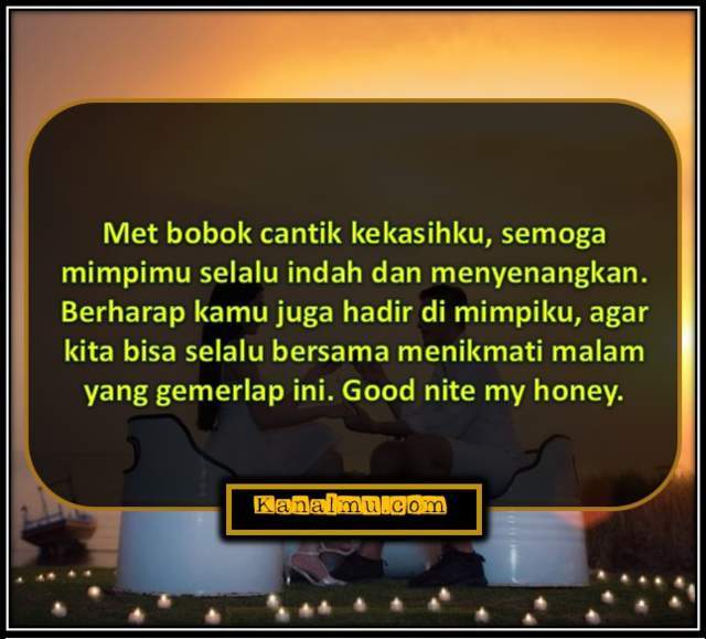 Ucapan selamat tidur romantis buat pacar tersayang menjadi salah satu pilihan yang cocok untuk digunakan berbalas kata-kata mesra bagi kamu yang saat ini sedang memadu kasih dengan orang yang membuatmu nyaman tersebut. Dengan selalu berbalas kata bergambar ini bisa menjadi salah satu cara untuk memberikan perhatian kepada pasangan atau pacarmu itu. Dan adapun cara ini adalah cara paling mudah yang bisa dilakukan sehari-hari dibandingkan dengan memberikan bunga, coklat , namun tentunya kata-kata rayuan romantis menyentuh hati plus hadiah akan lebih memberikan kenangan yang tidak bisa terlupakan bagi pasangan.
