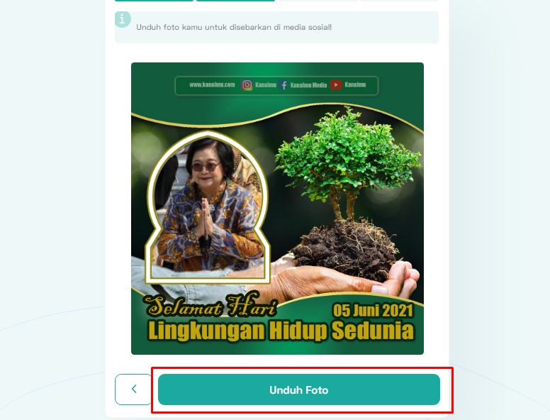 6. Di akhir sobat kanalmu unduh file twibbon yang sudah jadi kemudian kamu bisa jadikan caption atau share melalui laman sosmed seperti facebook, twitter, Instagram, whatsapp dan juga tiktok