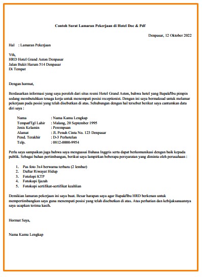 20 Contoh Surat Lamaran Pekerjaan Doc Word & Pdf