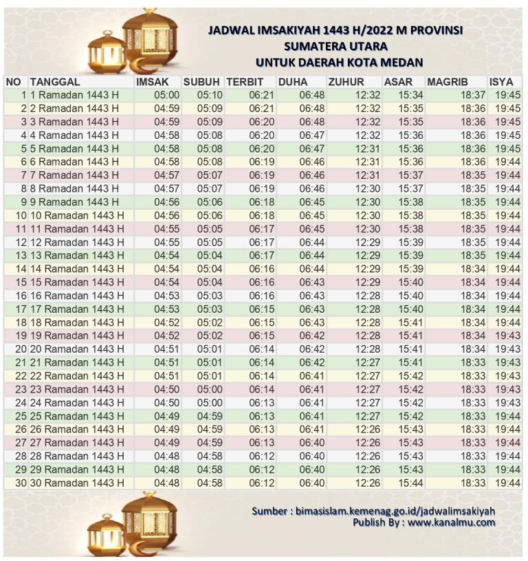Jadwal imsakiyah kota medan ramadhan 2022 bisa dijadikan sebagai salah satu rujukan untuk menentukan waktu ibadah umat islam untuk wilayah medan dan sekitarnya, dengan demikian